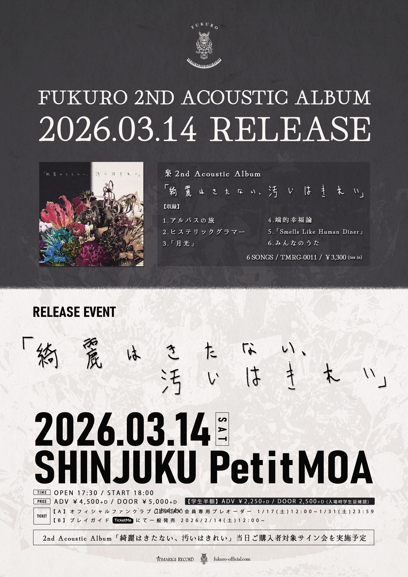 [一般] 前売¥4,500 / 当日 ¥5,000 [学生] 前売¥2,250 / 当日 ¥2,500