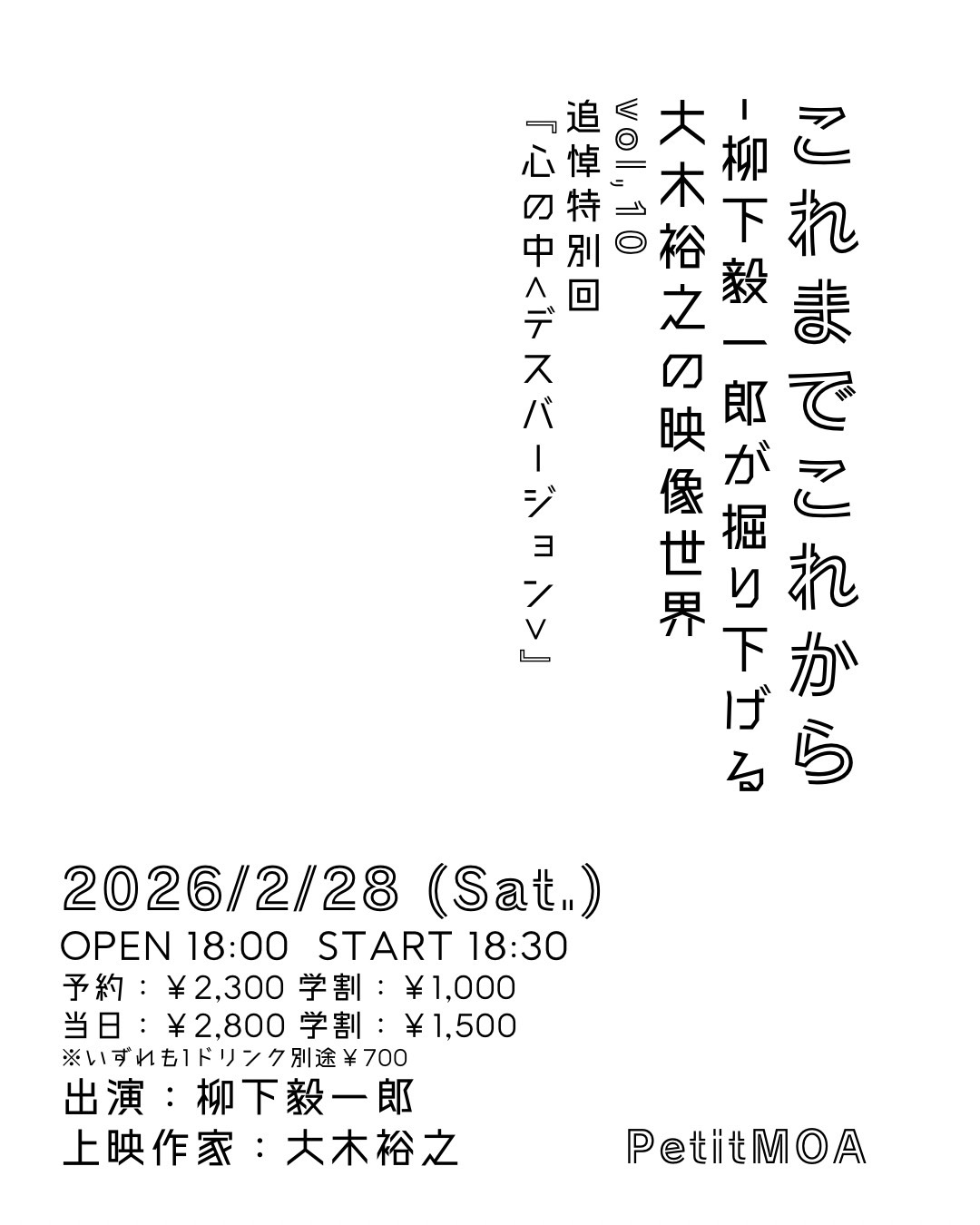 2026年2月28日(土) 開場 18:00 / 開演 18:30 会場:PetitMOA(東新宿)
